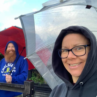 Daph tiptoes along, trying her best to put as little weight on the swaying walkway as possible. Gripping on for dear life, whilst trying to hold on to the giant-sized golf umbrella, she takes photos like she’s enjoying it.